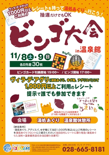 湯処あぐり・アグリスパ・ゆず庵で当日1,000円以上ご利用のレシートを、