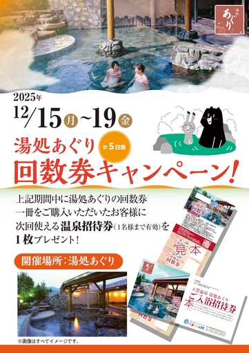湯処あぐりの回数券をお求めの方、次回使える温泉招待券をプレゼント✨