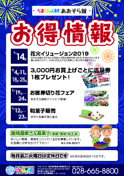 ろまんちっく村市場 あおぞら館 9月お得情報