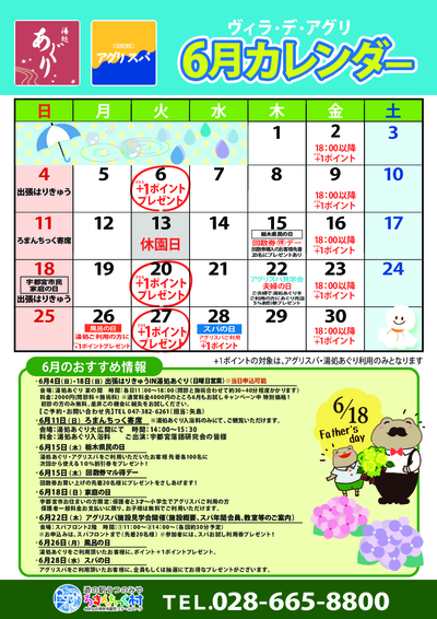 【ヴィラ・デ・アグリ】6月お得な情報カレンダー