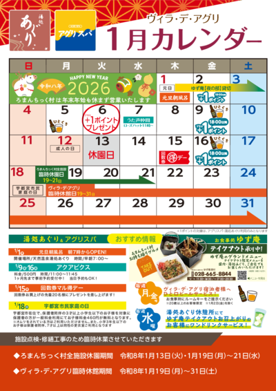 【ヴィラ・デ・アグリ】1月お得な情報カレンダー
