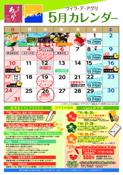 【ヴィラ・デ・アグリ】5月お得な情報カレンダー